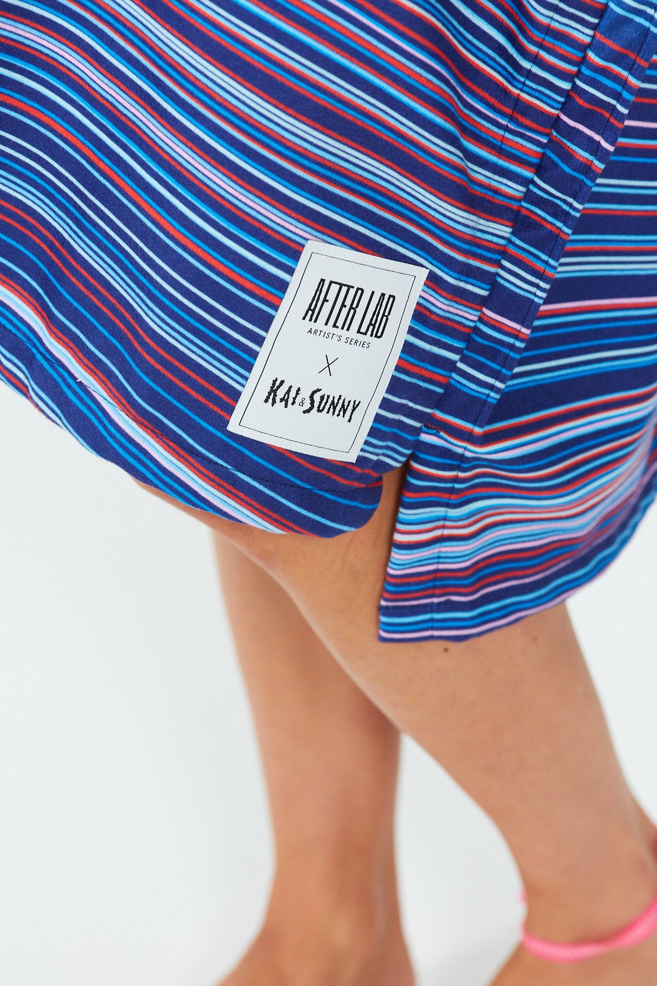 Auf diesem Badeponcho, der in Zusammenarbeit mit Kai & Sunny entstanden ist, spielt das Design mit perspektivischen Illusionen und subtilen Farbverläufen, die Tiefe und Bewegung auf der gesamten Oberfläche erzeugen. Das abstrakte, aber kontrollierte Werk verbindet die urbane Energie der Street Art mit einer entspannten Küstenatmosphäre und verwandelt den Poncho in ein modernes, gewagtes Kleidungsstück, das sich mit Licht und Bewegung verändert.