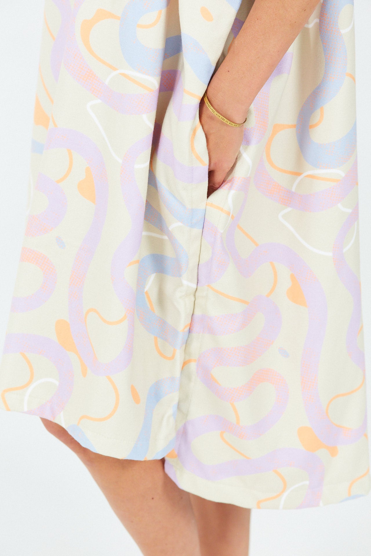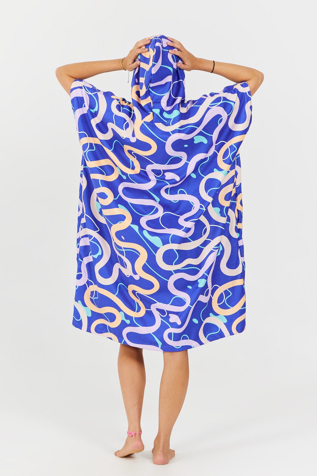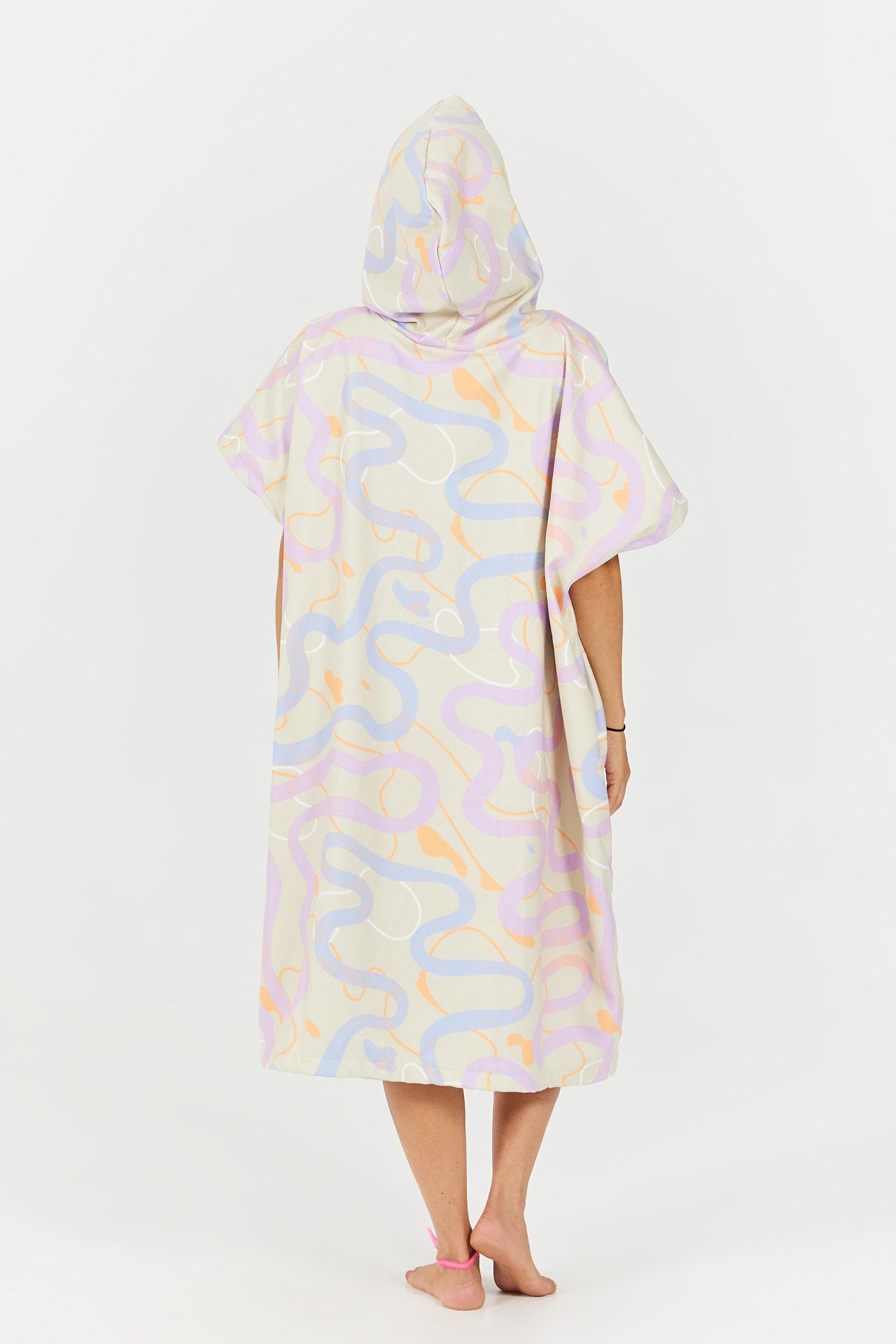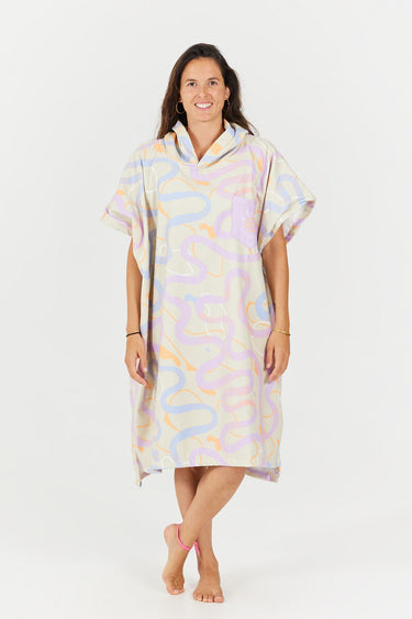 Der RoadBike Wickelponcho aus der Outdoor Series wurde von Radsport- und Outdoor-Enthusiasten inspiriert. Seine stilisierten, farbenfrohen Motive mit kurvigen Straßen auf sandfarbenem Hintergrund erinnern an Radtouren, lange Passüberquerungen und das Vergnügen, sich durch die Natur zu bewegen.
