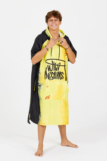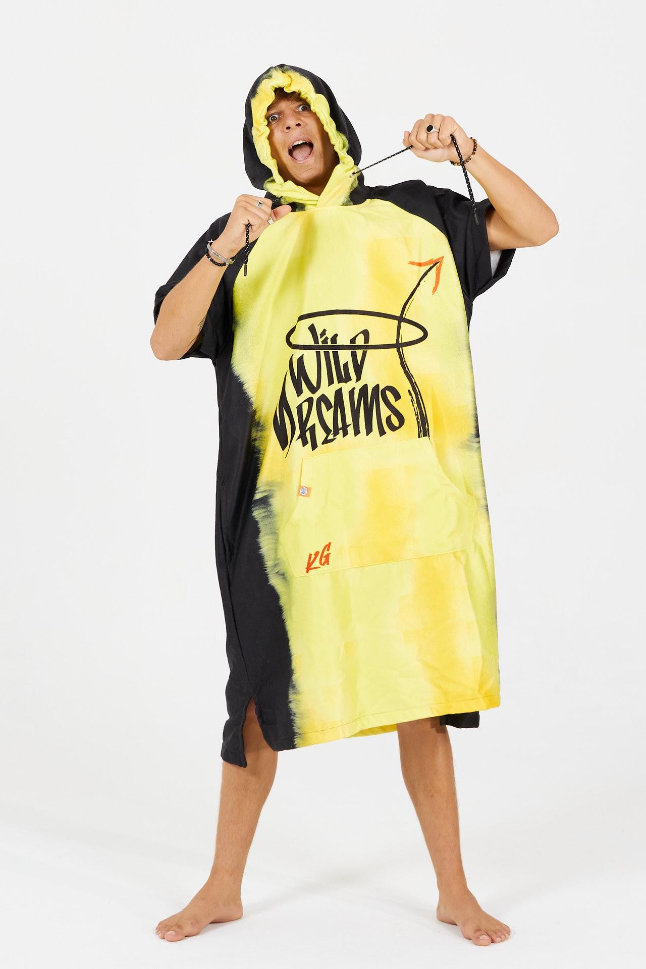 Ein neues Mitglied im Team After Essentials: der kleine Teufel von Hossegor, Kyllian Guerin, feiert mit diesem Pro Model Poncho seinen Einstand. „Wild Dreams“ – das Motto, das den Landeskader antreibt, sich immer voll zu engagieren, sobald die Bedingungen kräftig werden.
