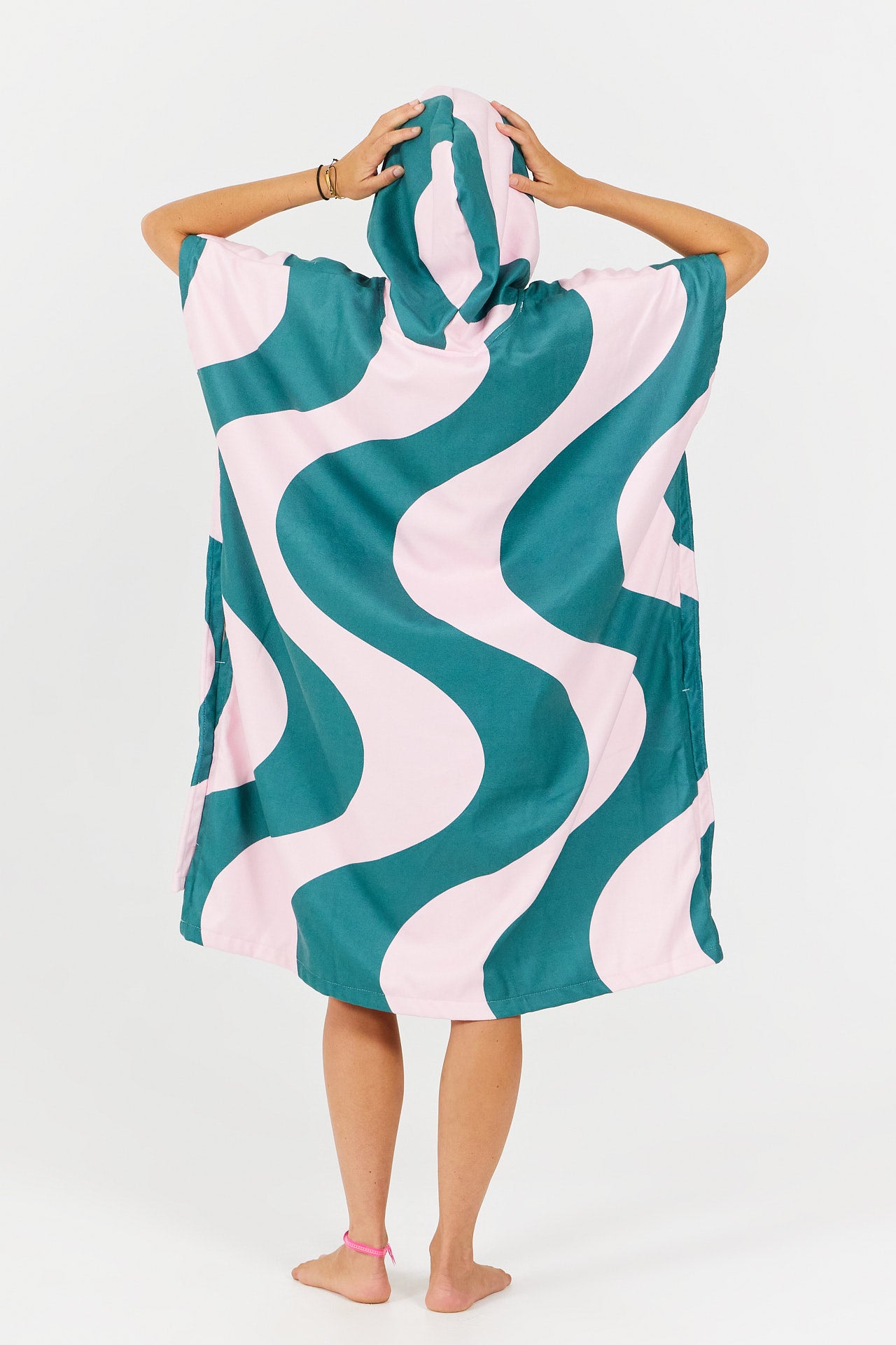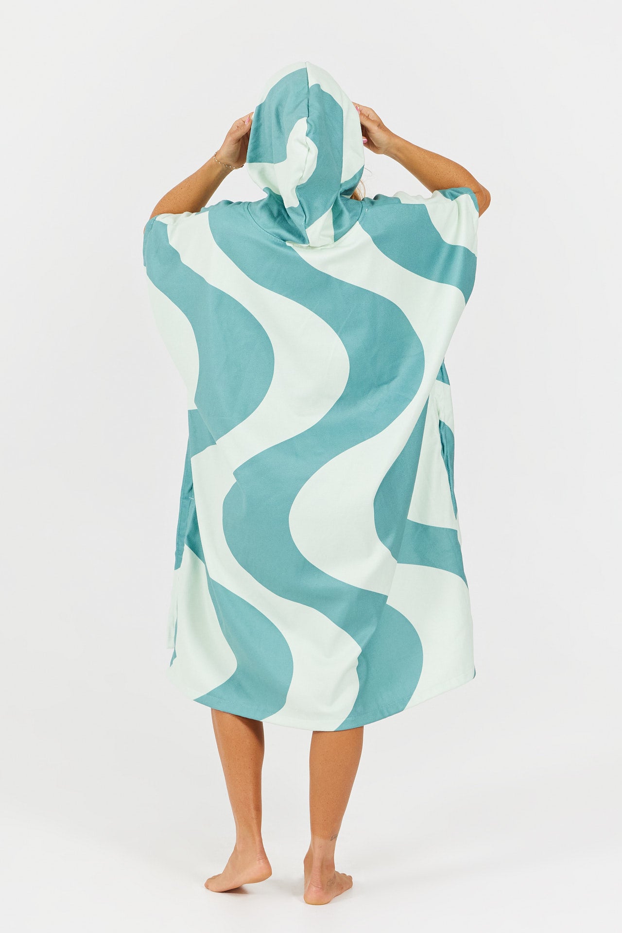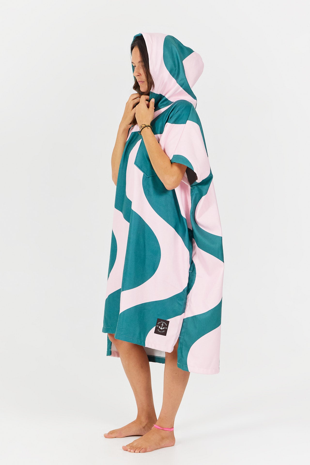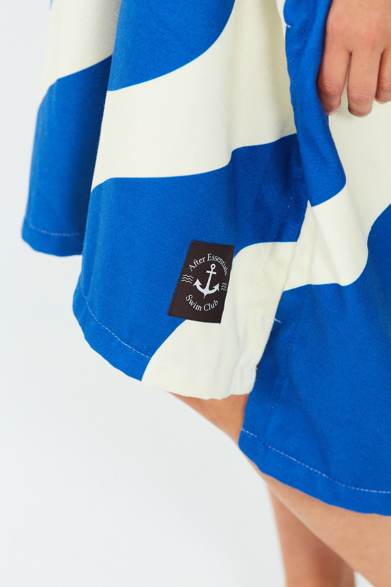 Inspiriert von der Welt der Retro-Schwimmclubs vereint der Bademantel Ondulation grafischen Stil und Komfort direkt nach dem Schwimmen. Ideal für den Strand oder den Pool.