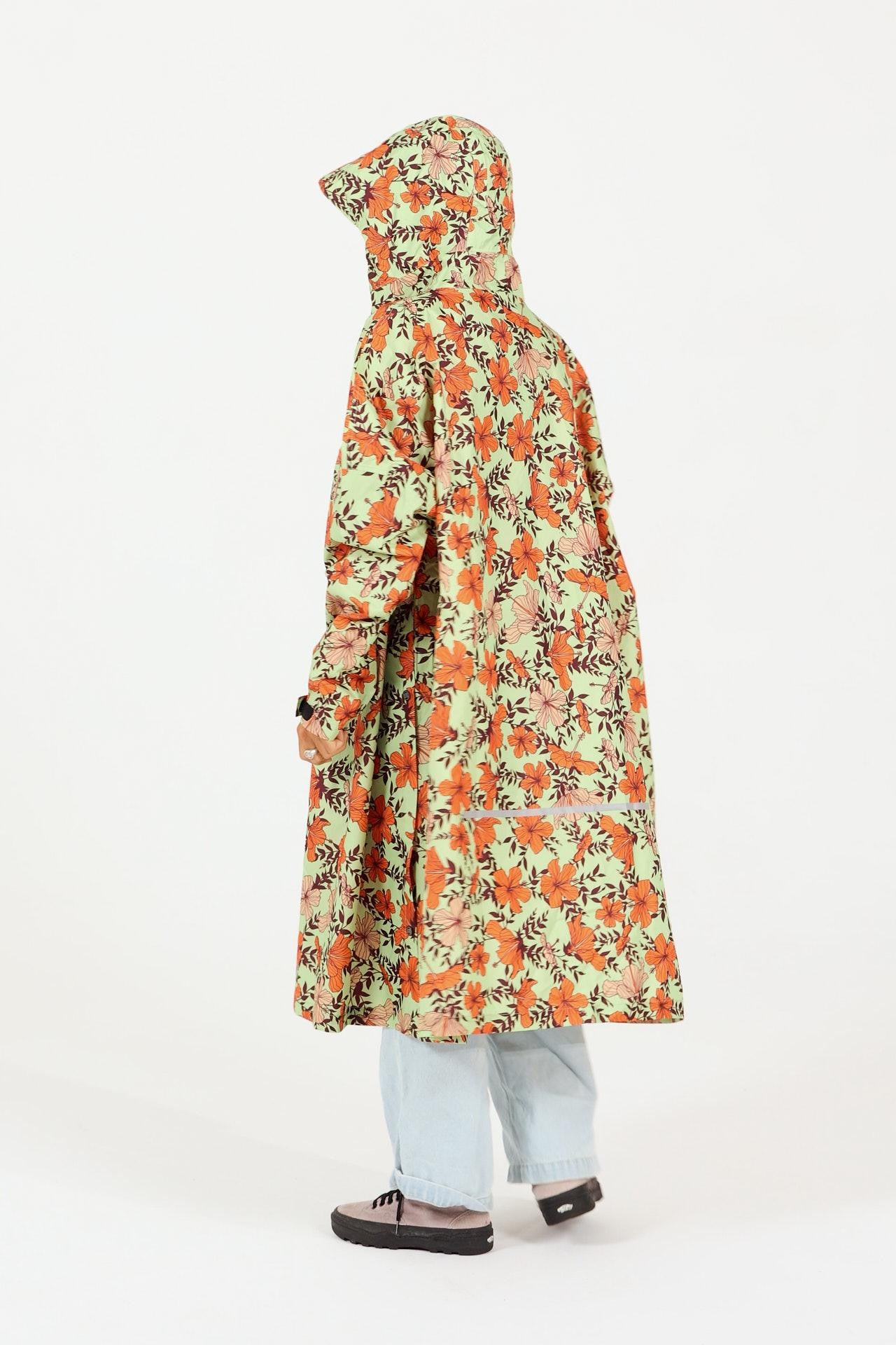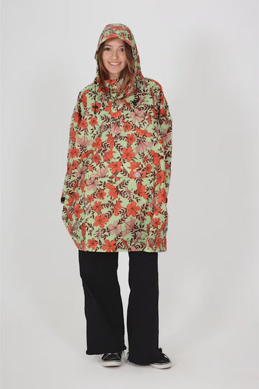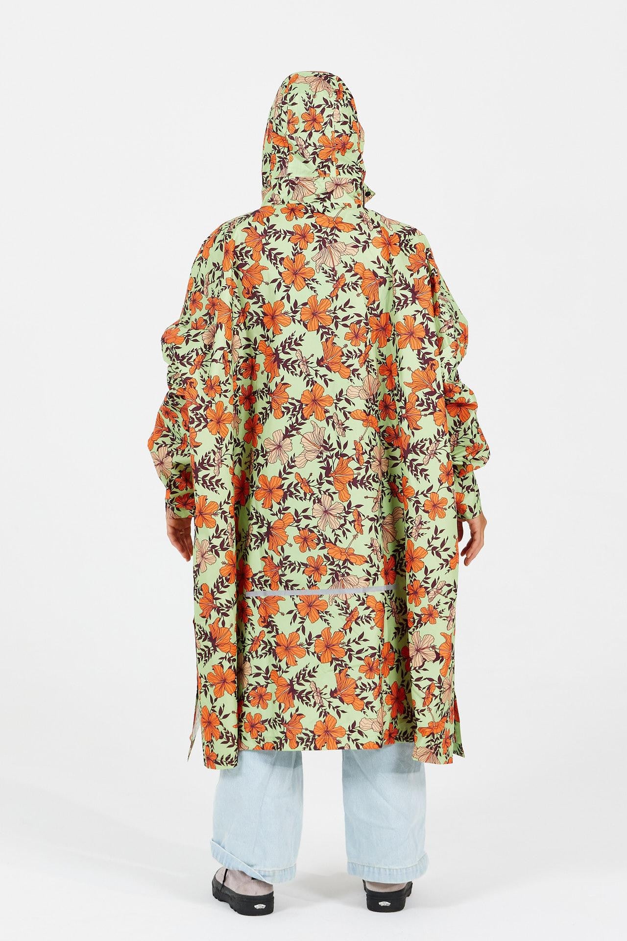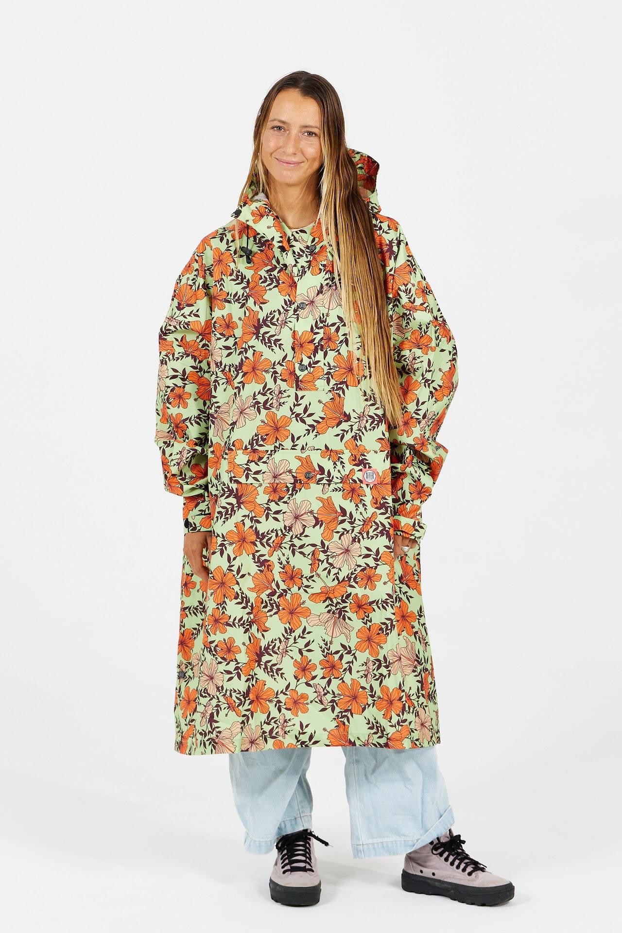 Berühmt für ihre Surfspots hat uns die Nordküste der Insel Oʻahu zu diesem Regenponcho mit hawaiianischen Prints inspiriert. Seine Pastelltöne und farbenfrohen Hibiskusblüten bringen selbst an regnerischen Tagen gute Laune!